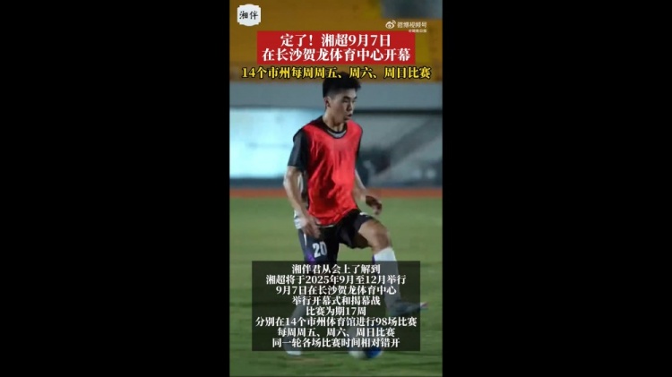 8月20日讯 据长沙发布消息,湘超将于9月7日在长沙开赛,分别在14个市州进行98场比赛。长沙发布报道称,湘超将于2025年9月至12月举行,9月7...